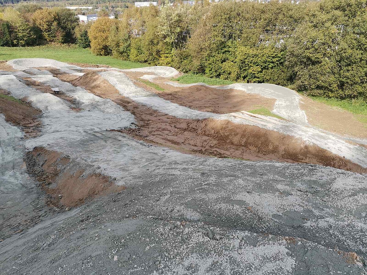 Olsberg. Die Arbeiten am Bikepark Olsberg haben begonnen. Die Rampenanlagen sind erstellt. Allerdings müssen bis zur Eröffnung noch viele weitere Arbeiten erfolgen: Die gesamte Anlage muss noch mit Grassamen eingesät werden und das Gras muss keimen. Zur Bahnlinie hin ist noch ein Zaun zu erstellen. Die Beschilderung des Bikeparks fehlt noch. Die angefüllten Erdhügel müssen zunächst für einige Zeit ruhen, bevor sie benutzt werden können.