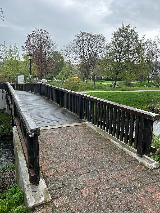 Die Abdeckung aus Metall soll das Holz des Handlaufs vor der Verwitterung schützen. Auf einer Länge von insgesamt etwa 40 Metern fehlt diese Kupferleiste nun auf beiden Seiten der Fußgängerbrücke. Der Sachschaden ist beträchtlich: Die Wiederherstellung der Kupferabdeckungen mit Einbau wird die Stadt etwa 8.000 bis 10.0000 Euro kosten.