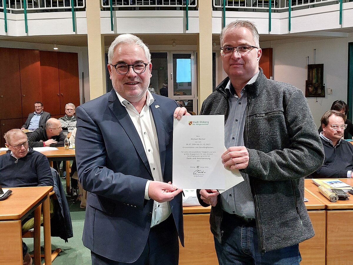 Gevelinghausen. Dankeschön für ein jahrzehntelanges Engagement für die Bürgerinnen und Bürger: In der Sitzung des Stadtrates wurde jetzt Michael Becker als Ortsvorsteher von Gevelinghausen verabschiedet.