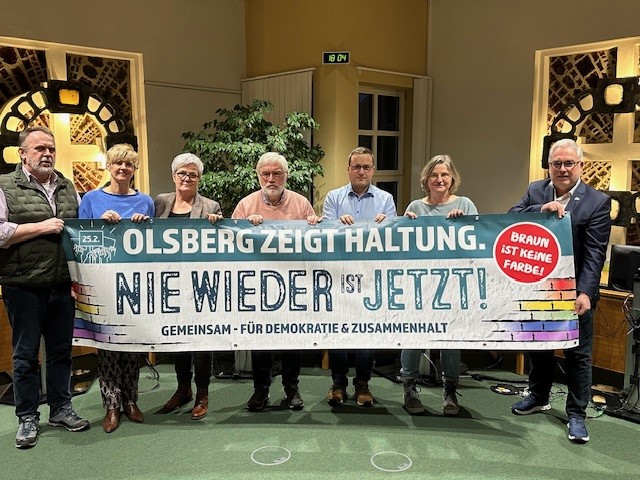 Das Motto dabei: „Olsberg zeigt Haltung“ – gemeinsam für Demokratie und Zusammenhalt“. Und gemeinsam laden die Veranstalter – die Ortsverbände von Bündnis 90/Die Grünen, CDU, SPD und FDP – zusammen mit Bürgermeister Wolfgang Fischer die gesamte Bevölkerung zur Teilnahme ein. Unterstützt wird der Demonstrationszug zudem von zahlreichen weiteren Gruppen, Vereinen, Institutionen und Initiativen. Start ist auf dem Vorplatz der Schützenhalle Bigge; über Stadionstraße, Hauptstraße und Frugesstraße geht es zum Rathaus. Dort findet eine Abschlusskundgebung statt.