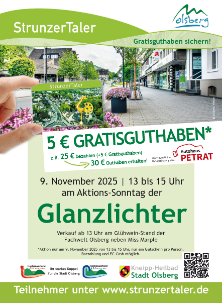 Der StrunzerTaler ist ein lokales Gutscheinsystem, das den Einzelhandel und die Gastronomie in Olsberg stärkt – und gleichzeitig eine attraktive Geschenkidee für jede Gelegenheit bietet.