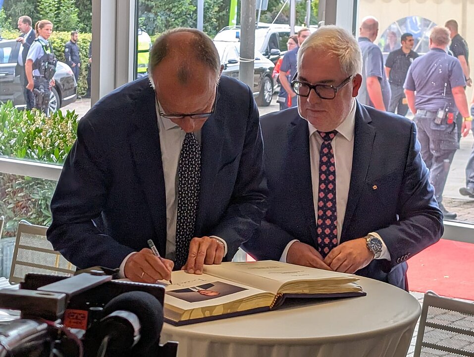 Bundeskanzler Friedrich Merz trägt sich in Goldenes Buch der Stadt Olsberg ein
