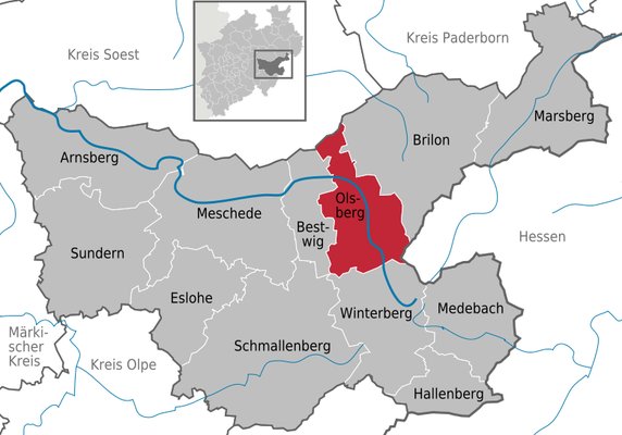 Olsberg liegt in Nordrhein-Westfalen, in der Nähe zum Ballungszentrum Ruhrgebiet und gehört zum Hochsauerlandkreis.